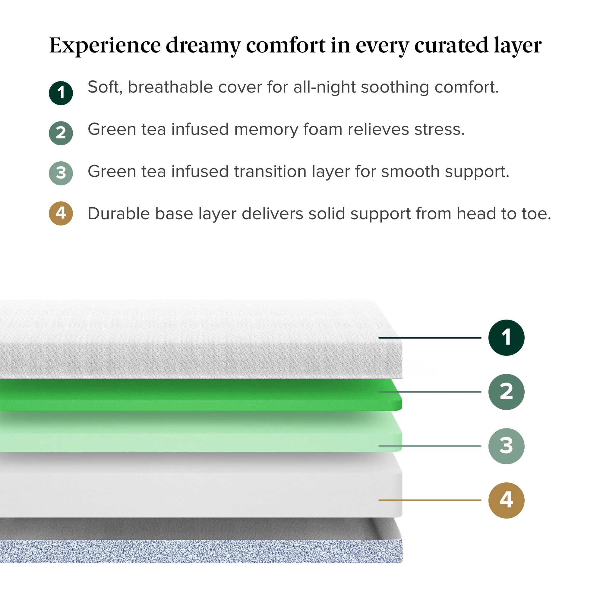 It's a fan favorite for a reason! Green tea-infused memory foam cradles your body to alleviate pressure and keeps you and your mattress sleeping fresh through the night. Sleep rested, wake up rejuvenated!